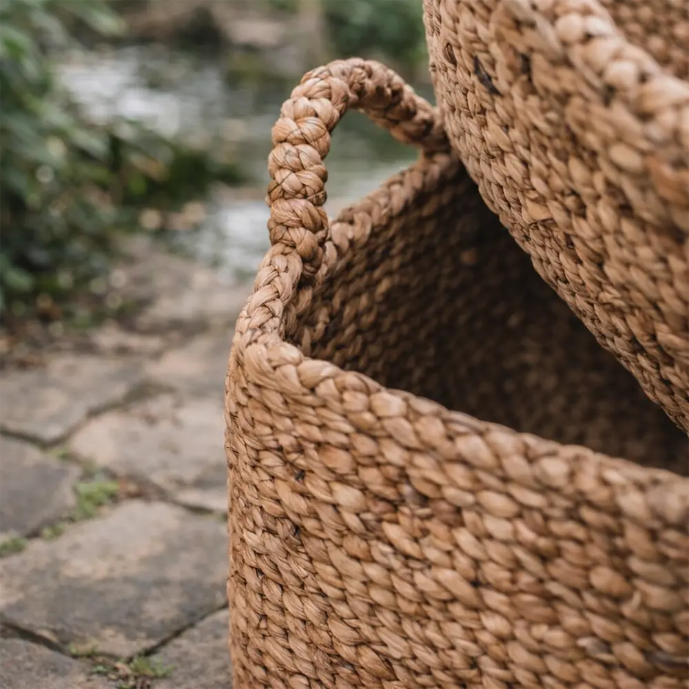 Das Geflecht aus dicken Wasserhyazinthenfasern macht den Korb robust und angenehm schwer, dadurch steht er stabil und wirkt edel.
