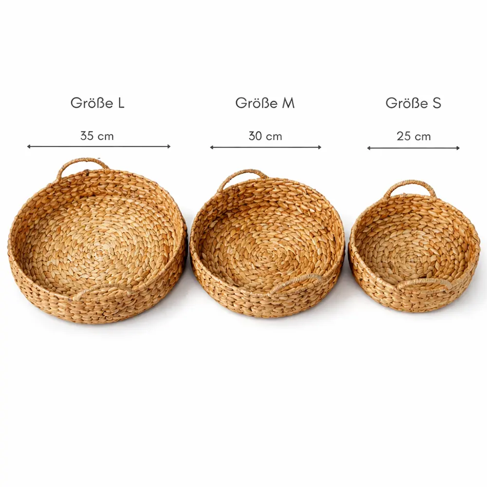 S passt gut für Nachttisch oder Bad. M ist ideal für den Esstisch. L ist perfekt, wenn du mehr Fläche willst