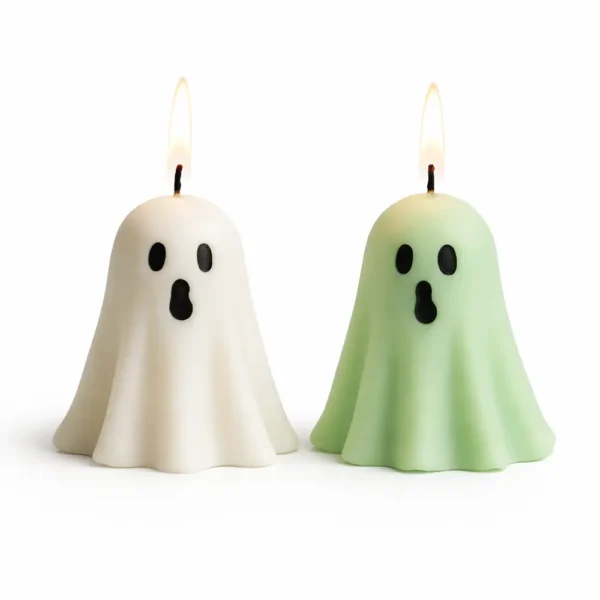 Unsere handgegossene Geister Kerze ist die perfekte Halloween-Deko! In Weiß oder Grün bringt sie spooky Stimmung auf deinen Tisch süß, gruselig und ideal als Geschenk.