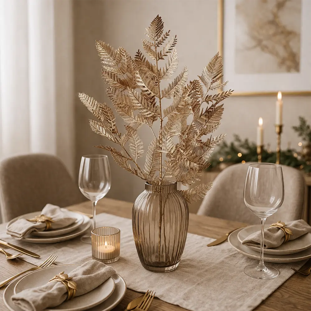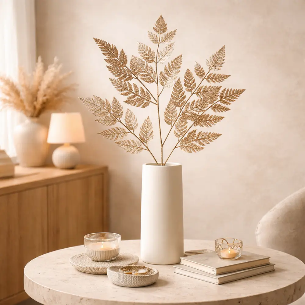 Wenn du dein Zuhause abgestimmt und hochwertig einrichten möchtest, lässt sich der goldene Farn sehr gut mit weiteren Wohnaccessoires kombinieren.