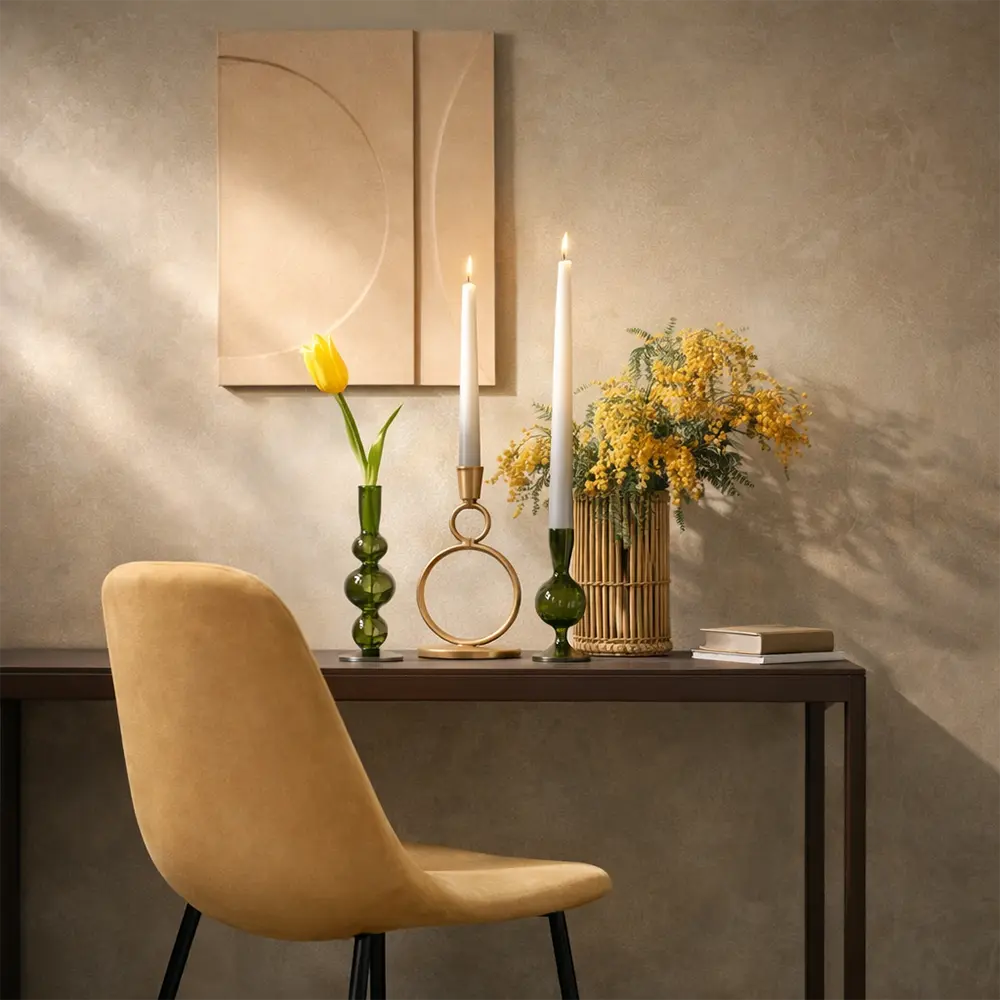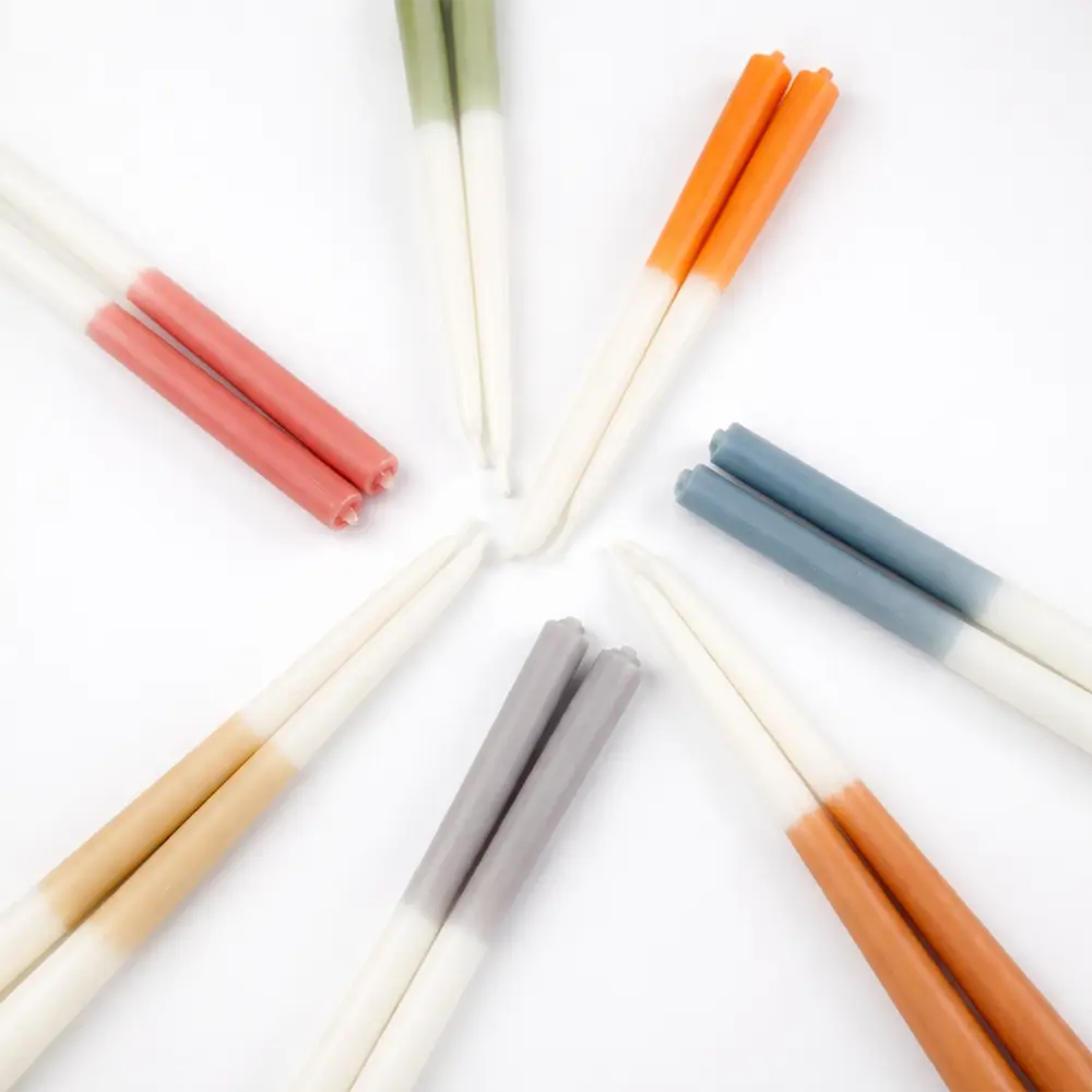 Spitzkerze Dip Dye hellgrau im 2er Set für eine ruhige, moderne Tischdeko. Der weiche Farbverlauf von Weiß zu Hellgrau wirkt wie ein kleines Design Detail und sieht auch unangezündet elegant aus. Abends sorgt die Spitzkerze für warmes Kerzenlicht, tagsüber ist sie ein stilvoller Hingucker im Kerzenhalter, auf dem Sideboard oder der Fensterbank. Das Set besteht aus zwei tauchgefärbten Kerzen mit H30 cm und Ø2,2 cm, passend für viele gängige Kerzenständer. Ideal, wenn du dezente Farben liebst und dein Zuhause mit wenig Aufwand hochwertiger wirken lassen möchtest.