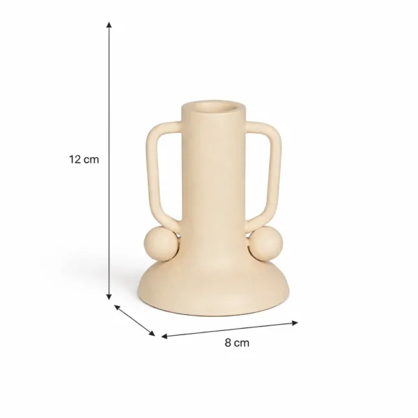 Der Halter ist für eine Dinnerkerze gedacht und steht kompakt, ohne viel Platz wegzunehmen.