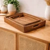 Amahai ist ein handgefertigtes Rattan Tablett in rechteckiger Form,