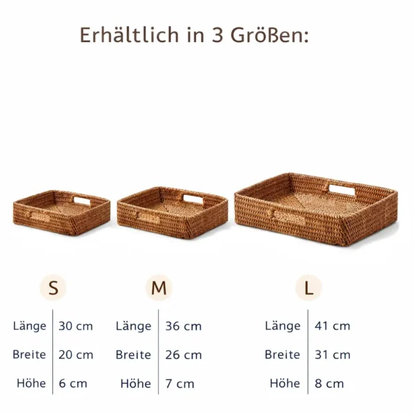 S ist ideal für kleine Ablagen, M passt perfekt für Tisch und Küche und L eignet sich für Gäste, Servieren und große Deko Arrangements.