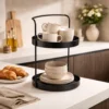 Tablett Etagere Schwarz für stilvolle Präsentation auf zwei Ebenen