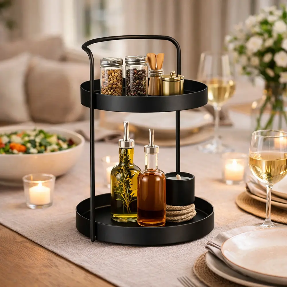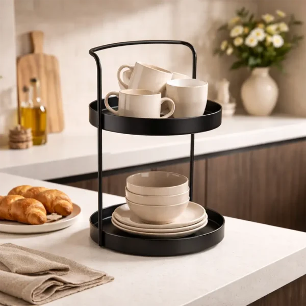 Tablett Etagere Schwarz für stilvolle Präsentation auf zwei Ebenen