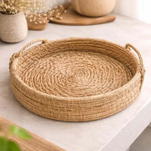 Das Seegras Tablett Pintu ist ein runder Blickfang, der dein Zuhause sofort wärmer wirken lässt.