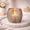 Die filigrane Drahtoptik wirkt leicht und modern, während das Kerzenlicht durch die Aluminiumfäden weich gebrochen wird.