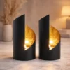 Teelichthalter 2er Set Schwarz Gold für warmes Licht und edle Akzente