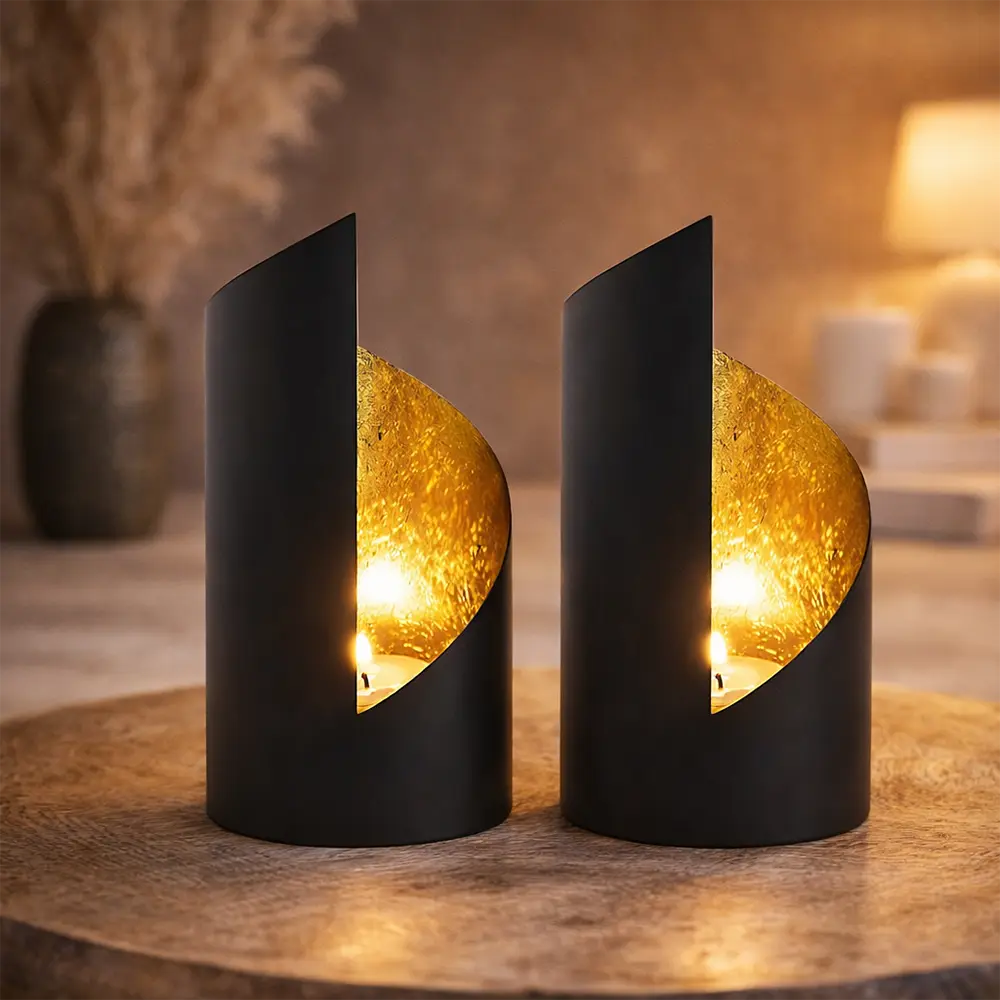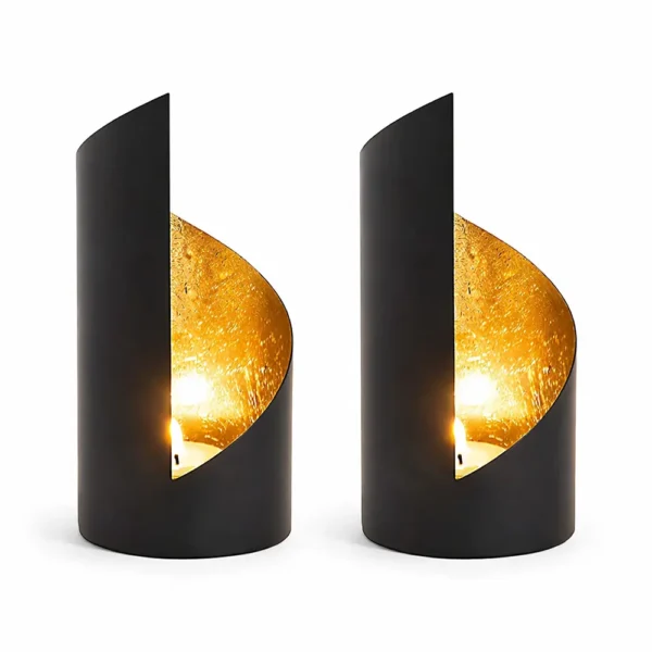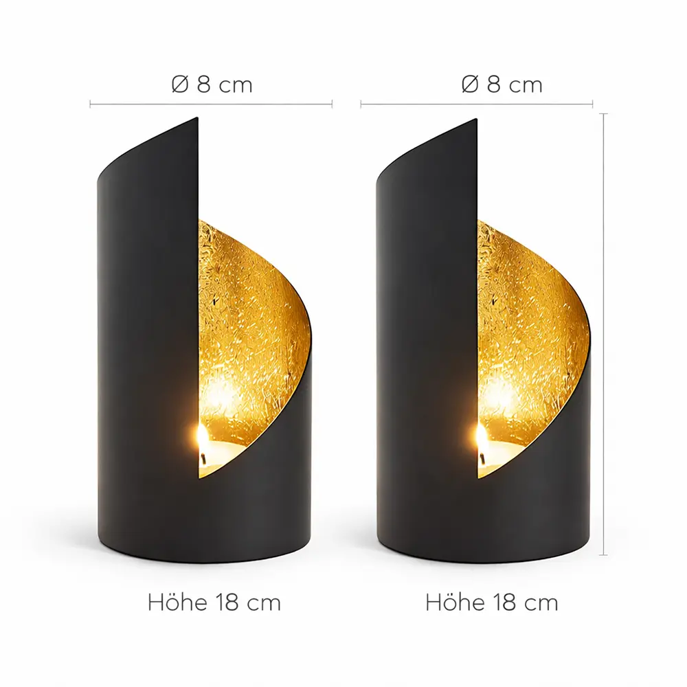 Teelichthalter 2er Set Schwarz Gold für warmes Licht und edle Akzente
