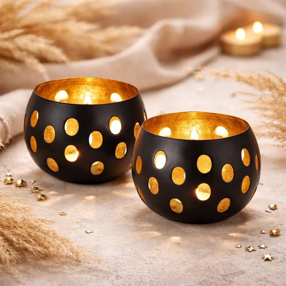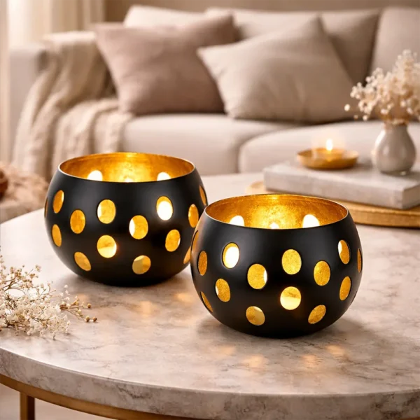 Teelichthalter Kugelform 2er Set für goldene Lichteffekte und gemütliche Abende