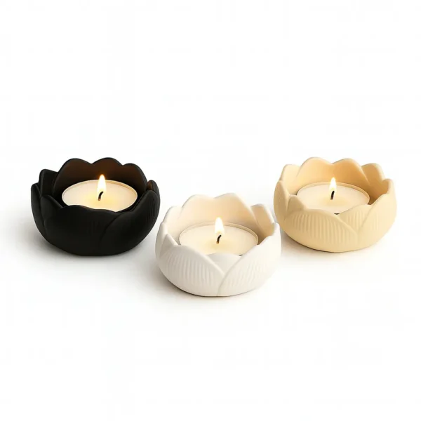 Der Teelichthalter Lotusblüte verleiht deinem Zuhause eine harmonische Atmosphäre. Mit seinem detailreichen Blüten-Design in Schwarz oder Weiß bringt er ruhige Eleganz in jede Ecke ob auf dem Sideboard, dem Nachttisch oder als Tischdeko. Perfekt für gemütliche Abende und kleine Lichtakzente.