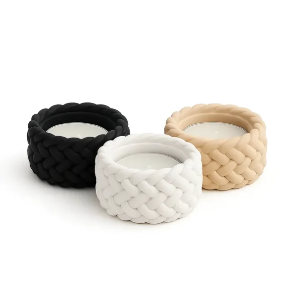 Der Teelichthalter Wolloptik vereint kuschelige Ästhetik mit modernem Design. Die handgefertigte, geflochtene Struktur erinnert an weiche Wolle und bringt in Schwarz oder Weiß stilvolle Gemütlichkeit in dein Zuhause. Ideal für Teelichter ob einzeln oder im Duo ein echter Blickfang.