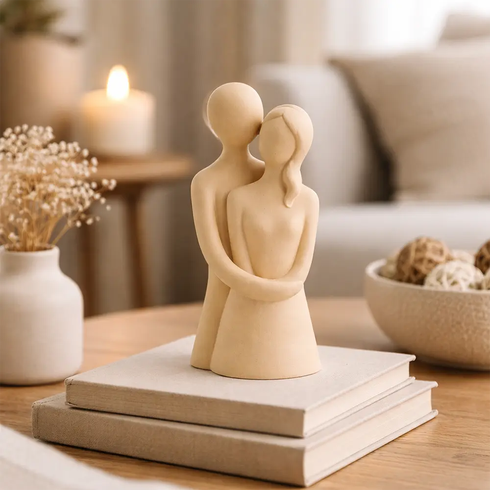 Verleihe deinem Zuhause eine stilvolle Note mit dieser einzigartigen Deko-Figur im modernen Design. Die abstrakte Darstellung eines innigen Paares symbolisiert Harmonie und Zusammenhalt perfekt als Blickfang auf Sideboards, Regalen oder im Wohnzimmer. Ob in elegantem Schwarz oder zeitlosem Weiß die Skulptur fügt sich dezent in jedes Interior ein. Hinweis: Durch die handgefertigte Verarbeitung sind leichte Abweichungen in Form und Oberfläche möglich jedes Stück ein Unikat.
