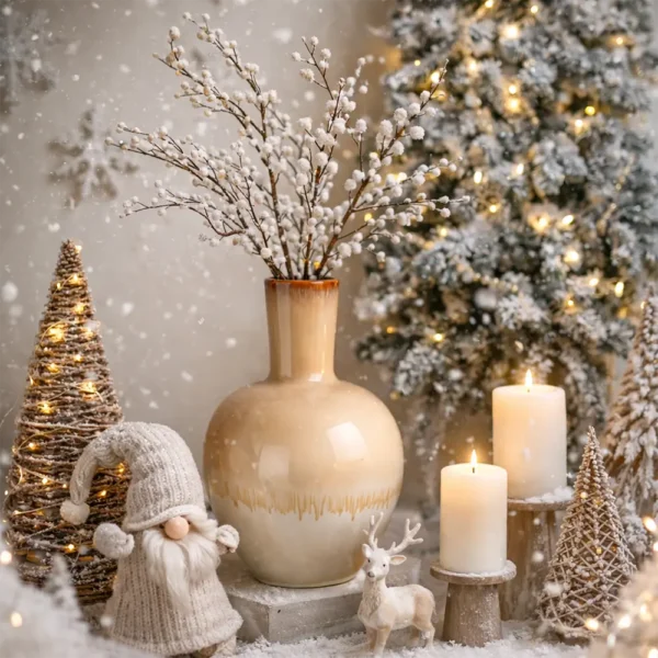 Als Deko Vase Creme passt Holm perfekt zu künstlichen Blumen, Federn oder dekorativen Zweigen.