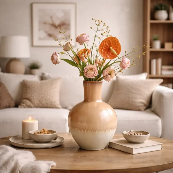 in Japandi, skandinavische und minimalistische Räume. Durch ihre neutrale Farbe ist diese Creme Vase