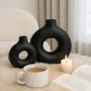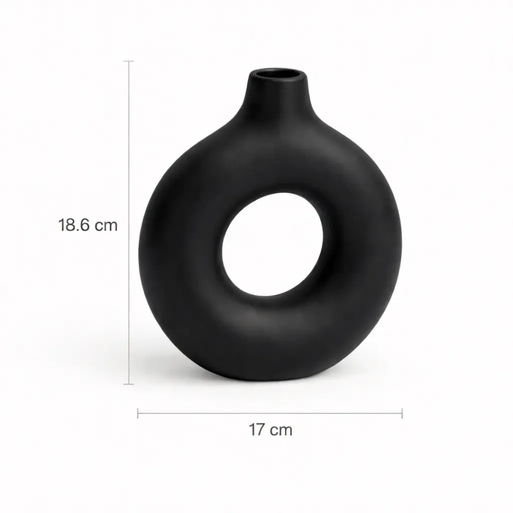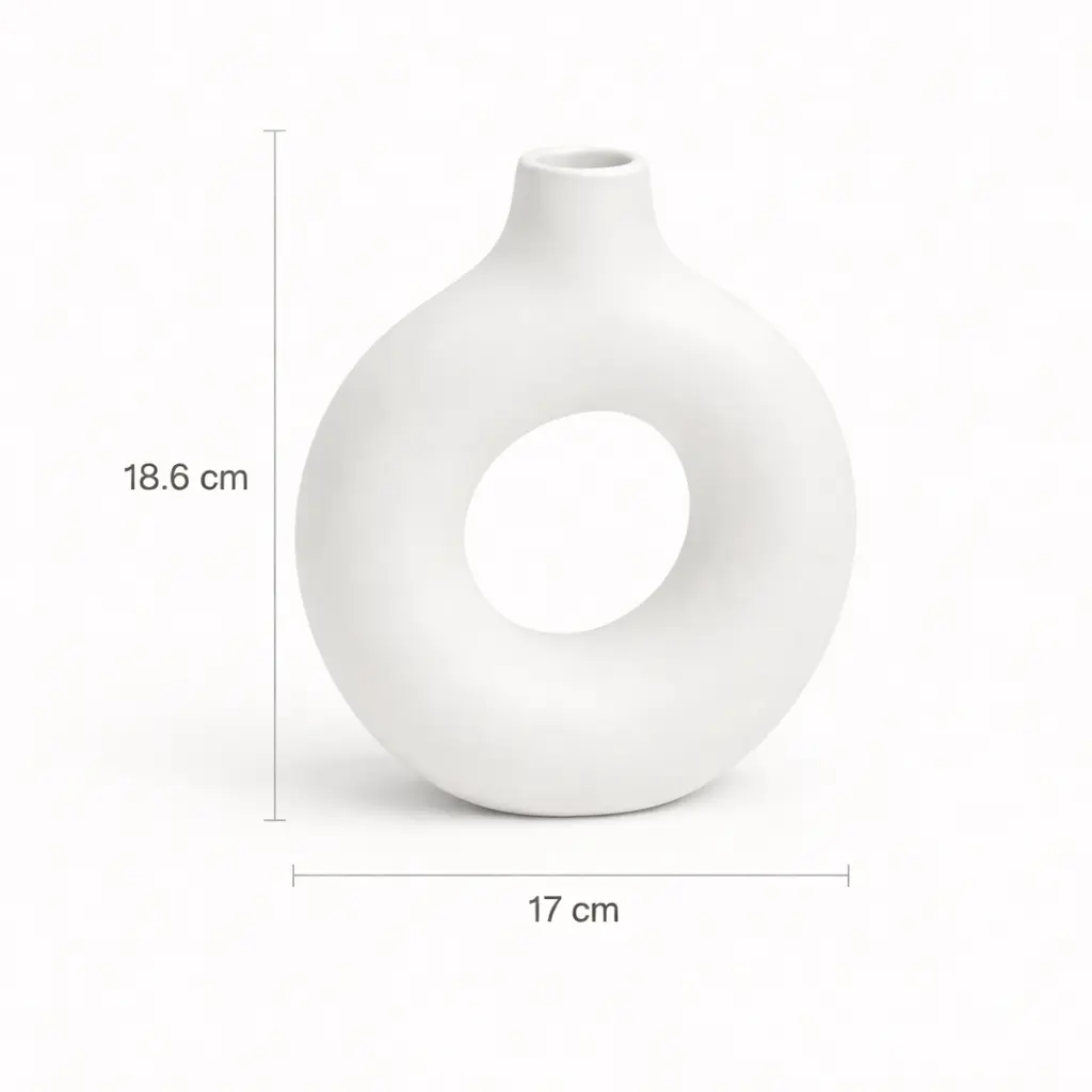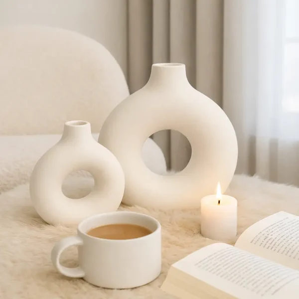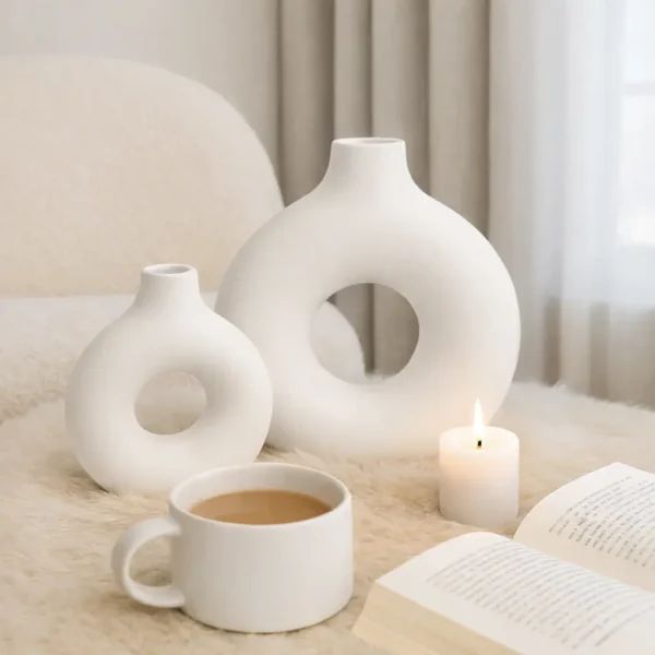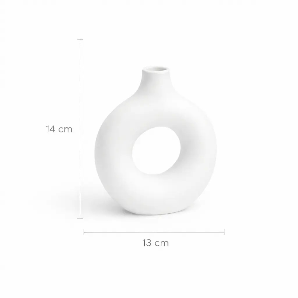 Verleihe deinem Zuhause einen Hauch von Eleganz mit dieser einzigartigen Deko Vase im modernen Donut-Design. Die harmonische, runde Form mit zentraler Öffnung steht für minimalistisches, skandinavisch inspiriertes Interior und setzt stilvolle Akzente auf Sideboards, Tischen oder Regalen. Ob mit einer einzelnen Trockenblume oder ganz pur diese moderne Wohnzimmer Deko ist ein zeitloser Blickfang und passt in fast jeden Einrichtungsstil. Perfekt als Wohnaccessoire und auch eine schöne Geschenkidee für Deko-Liebhaber.
