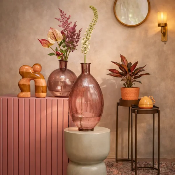 Die Vase Glas Firenza in Light Pink bringt sofort mehr Leichtigkeit in deinen Raum. Die Farbe wirkt sanft, aber nicht kitschig,